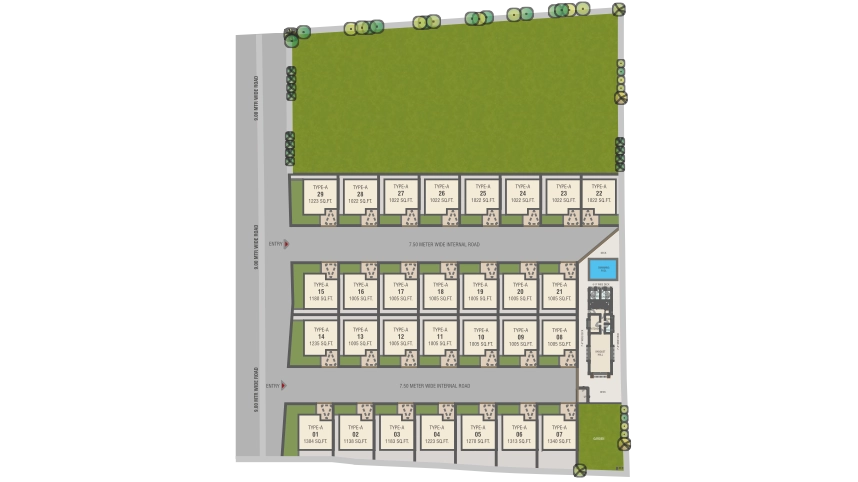 Kishan Signate offers more than just homes; it presents a vibrant community woven together by thoughtfully designed, wide, tree-lined streets. These avenues serve as the arteries of a neighborhood that prioritizes both aesthetics and functionality, creating a picturesque and tranquil environment perfect for leisurely strolls, active mornings, and safe spaces for children to play.